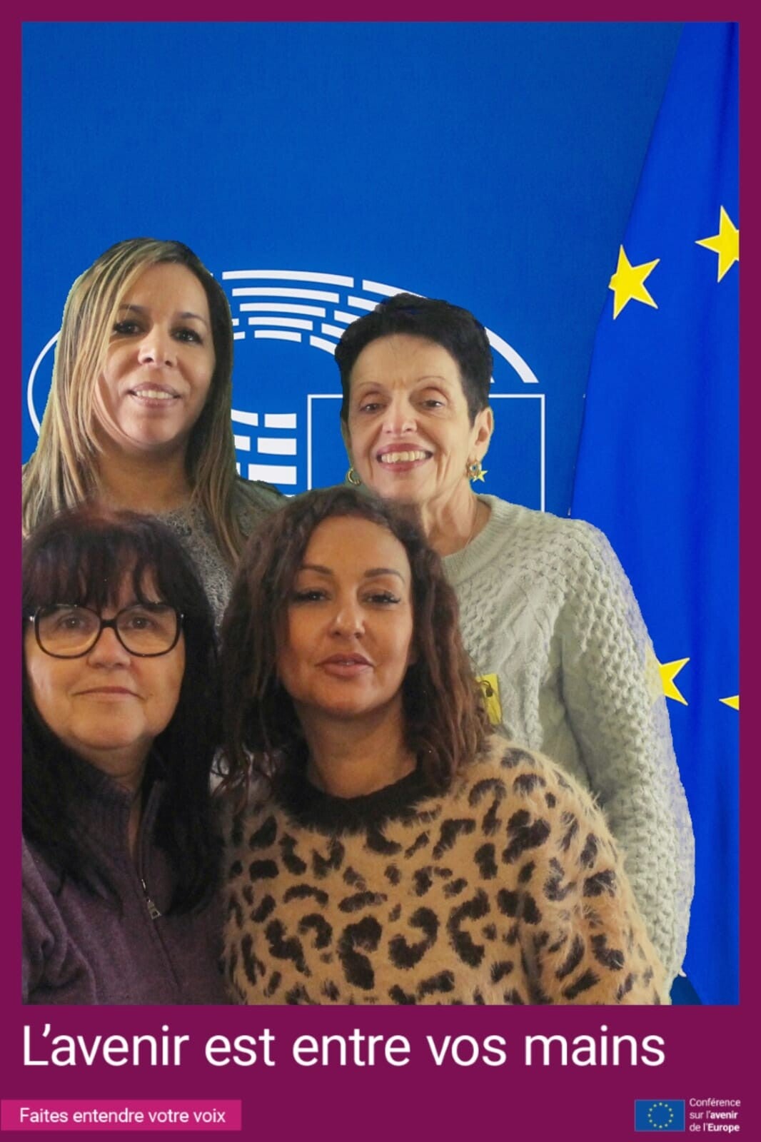 La délégation des 4 A.E.S.H parties en Erasmus+ à Bruxelles, Sabine, Nadia, Marie-Fabienne, Mylène.